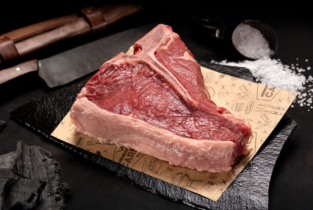 We select all of our meat on the bone and dry-age for a minimum of 28 days for beef.
